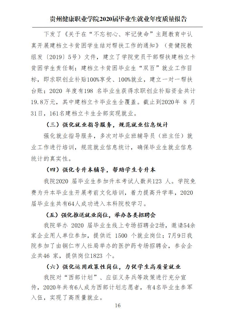 贵州健康职业学院2020届毕业生就业质量年度报告