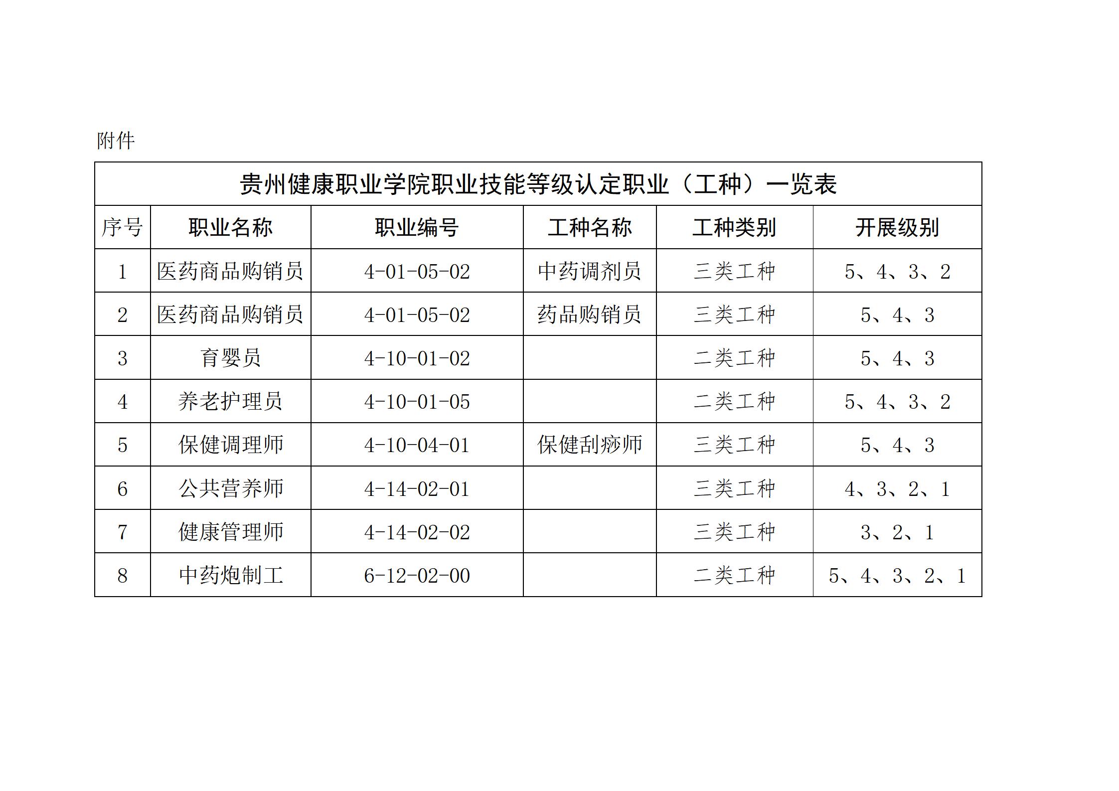 附件:贵州健康职业学院职业技能等级认定职业(工种)一览表