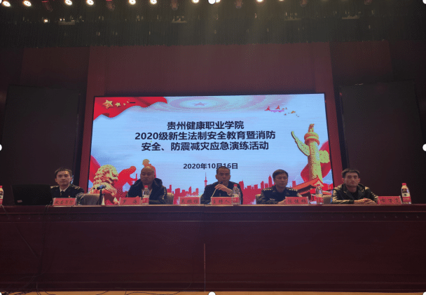 10月16日,我院在大礼堂组织开展贵州健康职业学院开展2020级新生法治、安全教育暨消防、地震避险应急演练活动。2020级全体班干部、全体专(兼)职辅导员、学生处、保卫处和三系学生科相关人员共700余人参加,活动由保卫处处长吴鹏程主持。