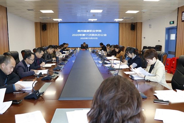 会议传达学习了《省人民政府关于印发贵州省支持职业教育发展若干措施的通知》《铜仁市职业院校产教融合校企合作调研报告》。听取了教务处、学生处、招生就业处、教学质量监控与评估办公室、药学系、图书馆近期有关工作汇报,并作了研究部署。会议研究审议了《贵州健康职业学院教学督导工作管理办法(试行)》《贵州健康职业学院关于表彰2020级学生军训优秀连队、优秀教官、优秀指导员、优秀学员和优秀通讯员的决定》《贵州健康职业学院学生处关于开展2020年省级和校级三好学生、优秀干部、先进班集体评选工作的报告》,与会人员作了讨论发言。