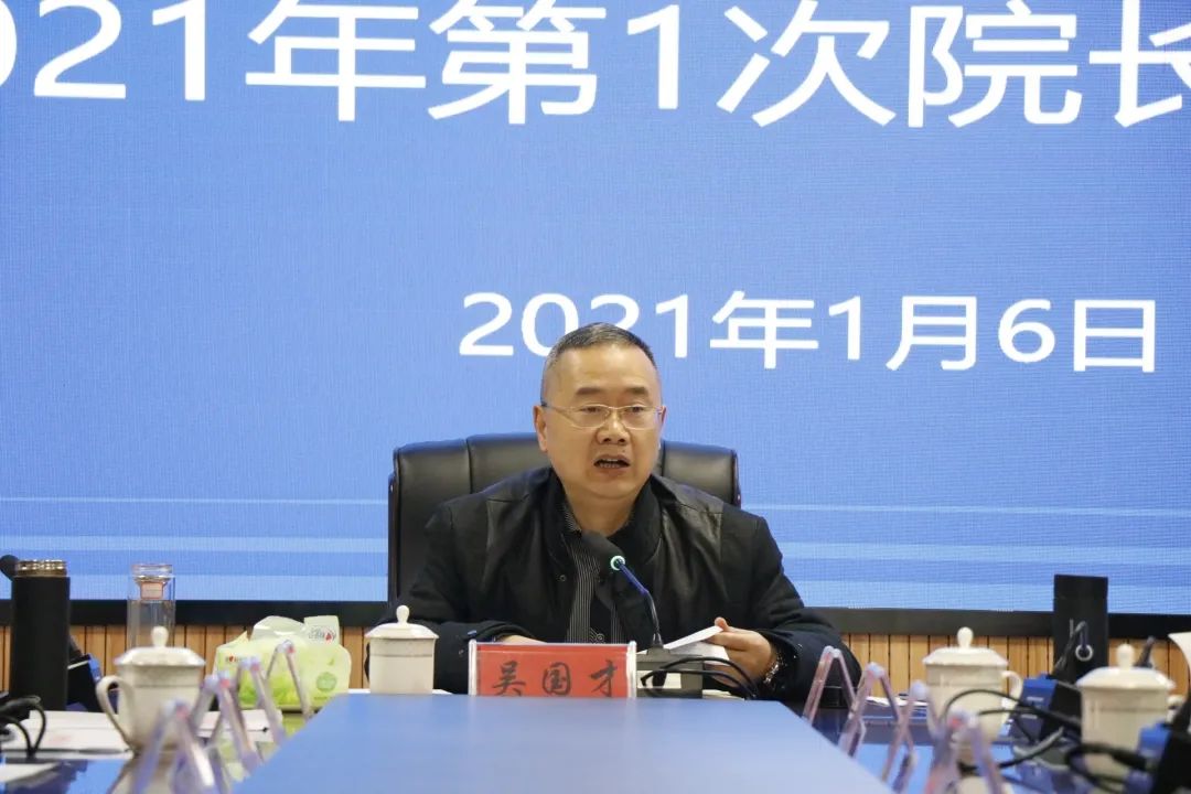 1月6日上午,学院党委副书记,院长吴国才主持召开2021年第一次会议,院领导唐康、陈太雄、张敏、王家琪、刘艳、王晶韵出席会议,各部门负责人参加了会议。
