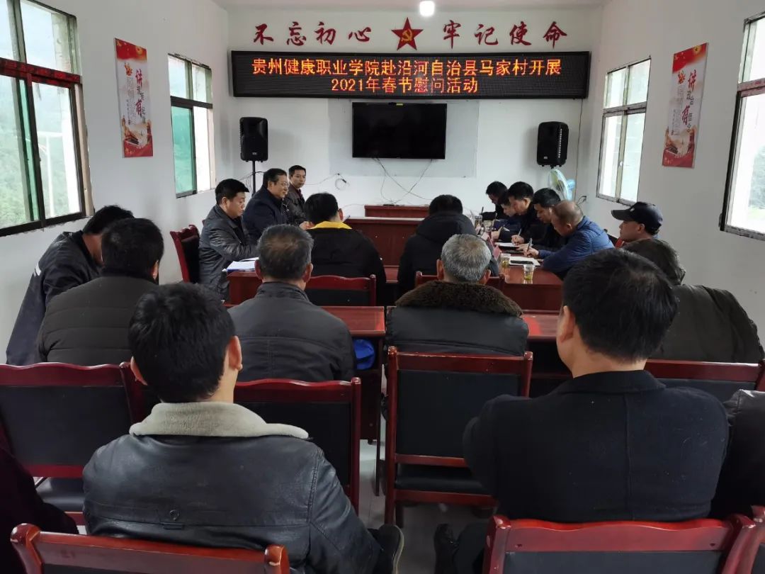2月3日,在2021年春节来临之际,贵州健康职业学院党委副书记李黔军,党委委员、组织人事部部长张敏,纪委副书记、监察室主任刘泽汉一行赴沿河自治县马家村开展春节慰问活动。