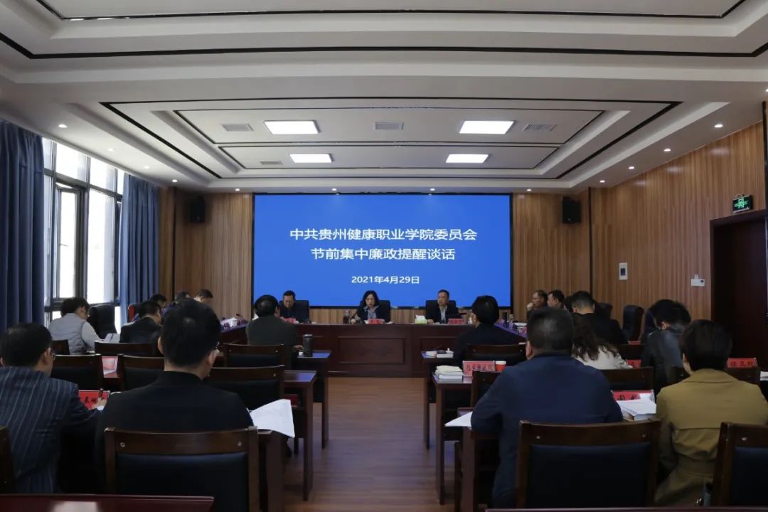 4月29日,我院组织开展“五一”节前廉洁自律和安全风险防控专项提醒约谈会议,院党委书记黄霞主持会议并讲话,学院领导班子成员出席,各部门、各系负责人参加会议。