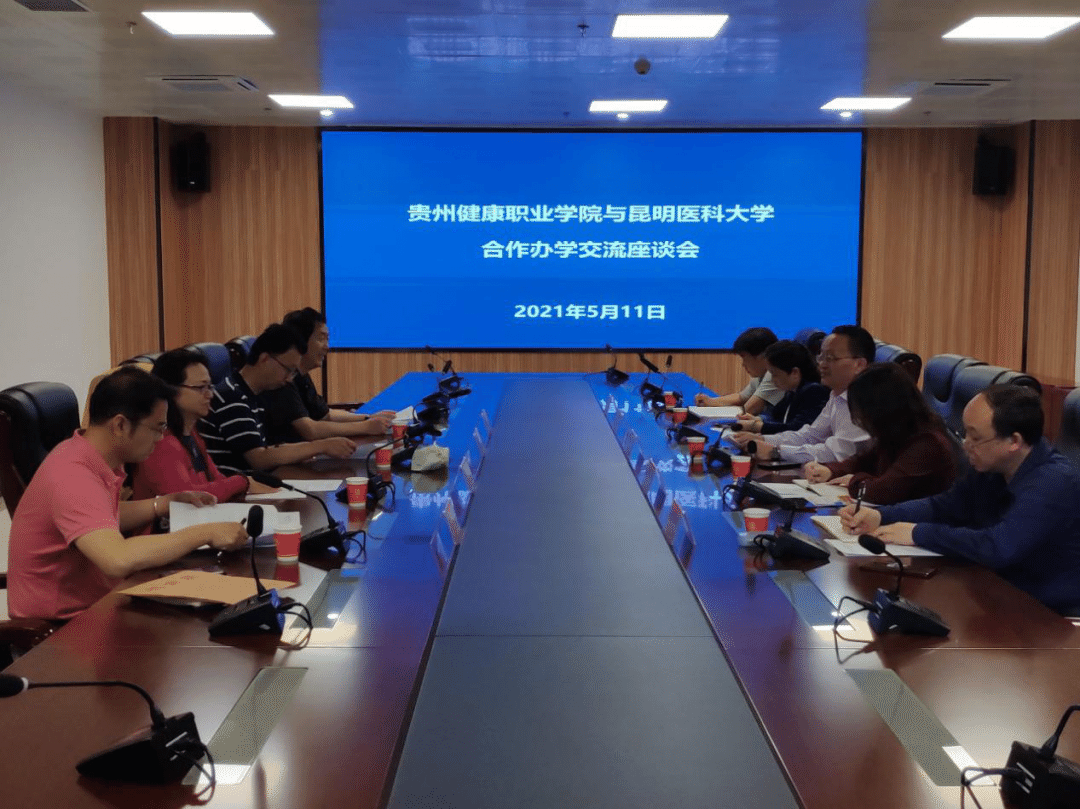 5月11日,昆明医科大学继续教育学院副院长浦榕一行4人来我院洽谈继续教育合作办学事宜。副院长龙宪碧主持召开座谈会,院党委委员、护理系主任刘艳,继续教育部主任王朝艳、药学系党总支书记田松明、健康管理系党总支书记夏国文参会。