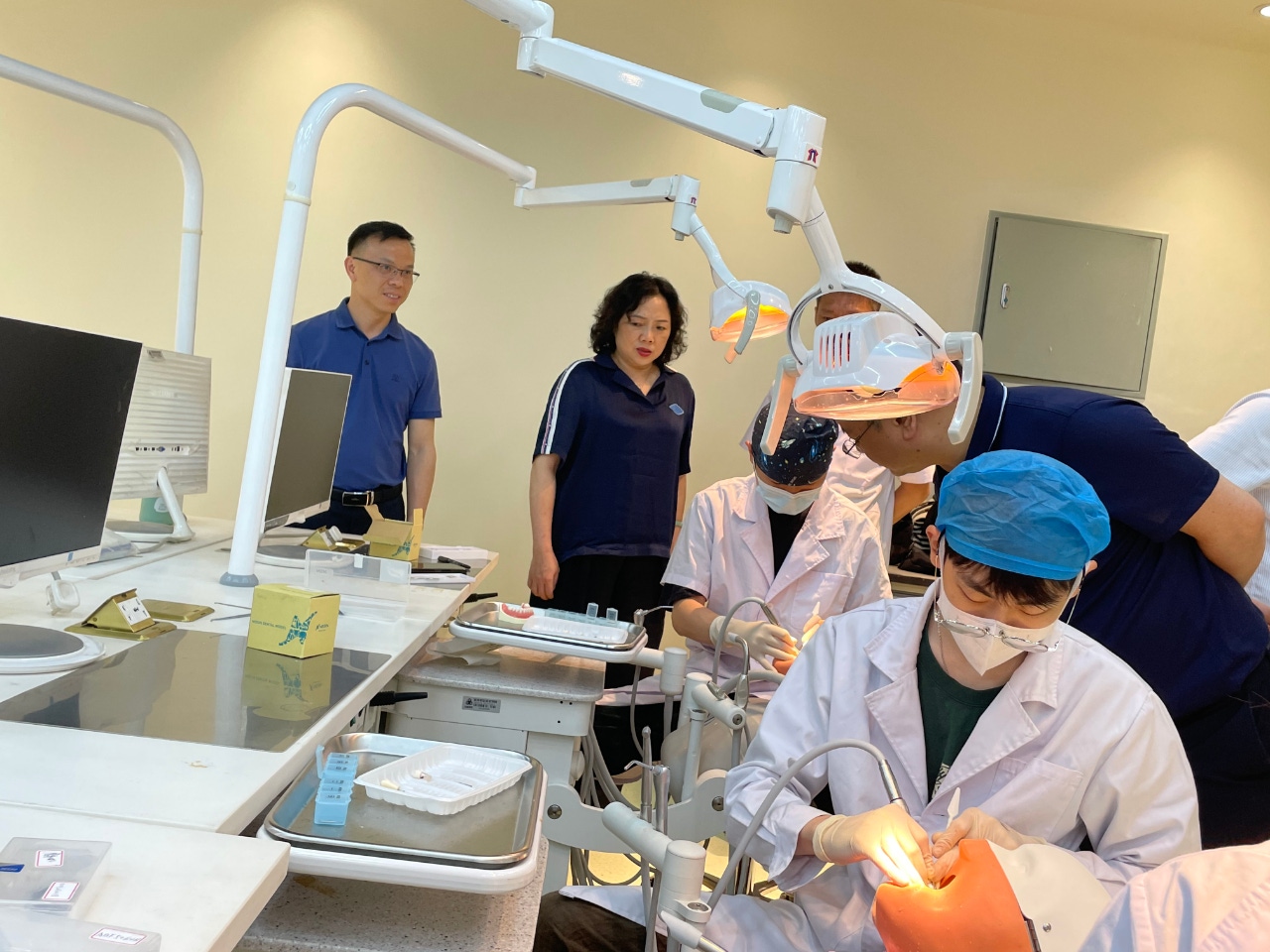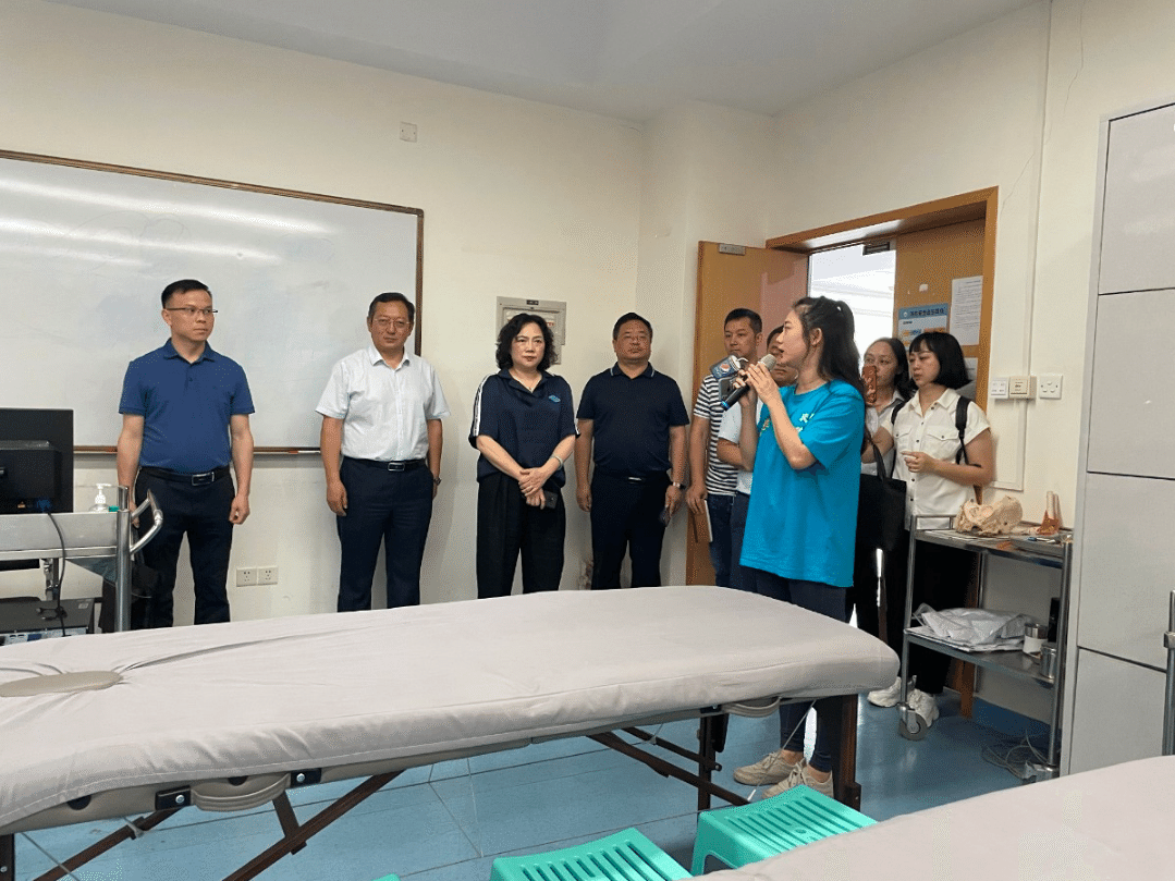 在该院相关负责人的陪同下,考察团参观了医学技术与护理学院实训大楼。整洁的实训环境、精细高效的管理理念、职责分明的管理制度、耳目一新的教学方法等让考察团印象深刻。医学技术与护理学院负责人徐晨对该院护理专业现代学徒制人才培养的实施情况,理实一体化教学进行了详细介绍。