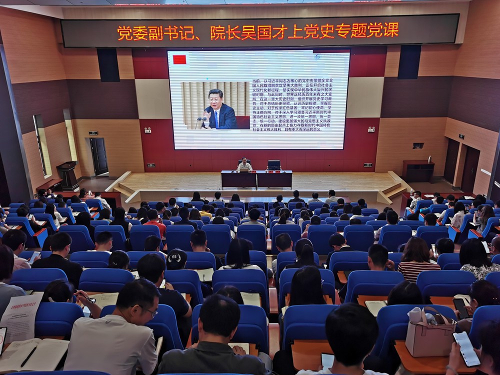 5月31日,我院党委副书记、院长吴国才围绕“认真学习党史 坚定理想信念 奋力推动发展”主题上专题党课。党课由党委副书记李黔军主持。全体专任教师和行政兼职教师参与聆听。