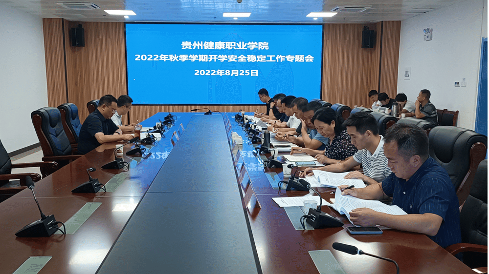 会议传达学习了习近平总书记关于安全生产的重要论述、全省教育“七大提升工程”推进暨2022年秋季学期开学工作部署会、全省安全稳定工作视频会等精神,讨论了《贵州健康职业学院2022年秋季学期开学安全稳定工作方案》《贵州健康职业学院安全大检查大培训大宣讲实施方案》《贵州健康职业学院突发公共事件总体应急预案》,保卫处安排部署了秋季学期开学安全稳定工作,院党委委员、副院长田勇对相关工作进行了强调。