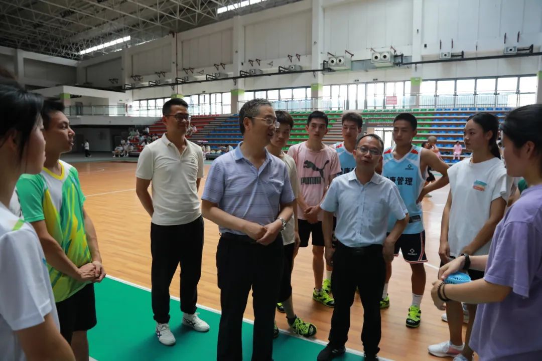 5月29日,党委副书记、院长吴国才来到学院体育馆,调研我院参加贵州省第十届少数民族传统体育运动会——《土家同心绳》节目训练工作,人文基础部负责人参加调研。