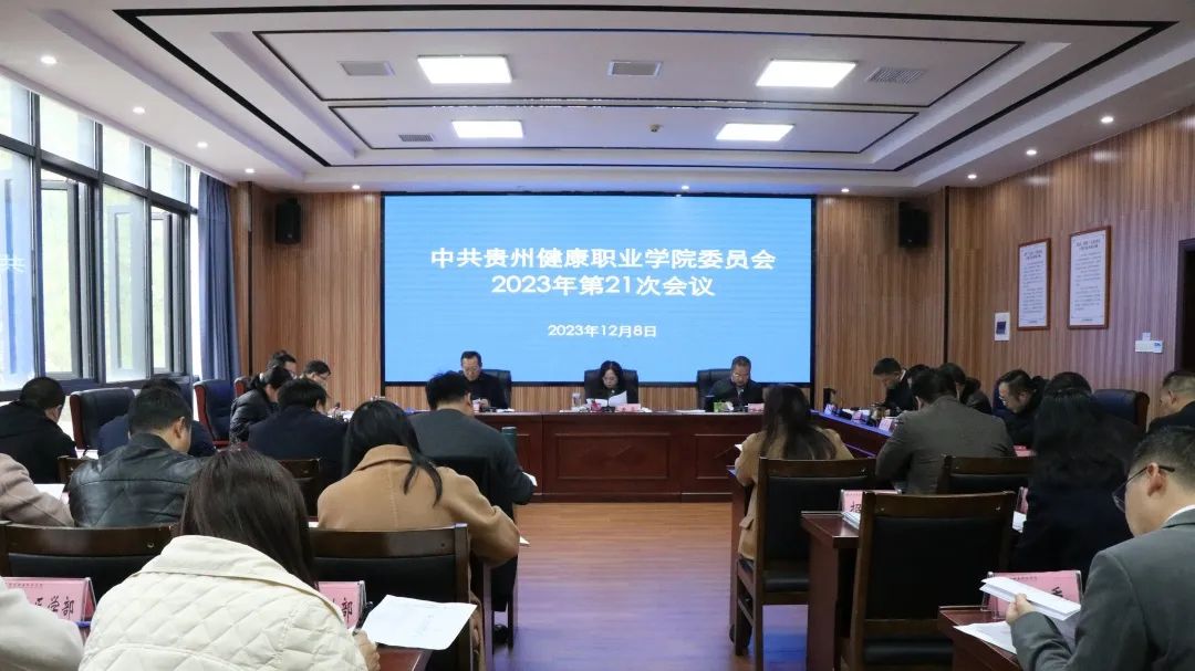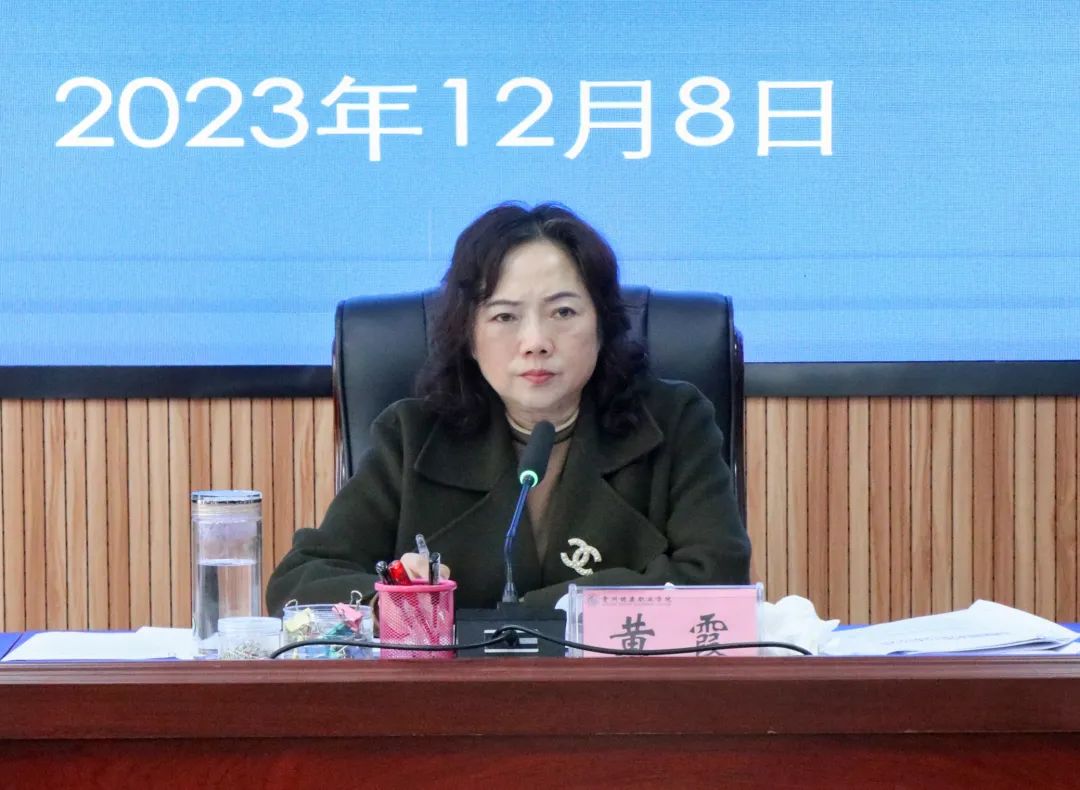 12月8日,我院召开2023年第21次党委会。院党委书记黄霞主持会议并讲话,党委副书记、院长吴国才及党委班子成员出席会议,各部门、各系负责人列席会议。
