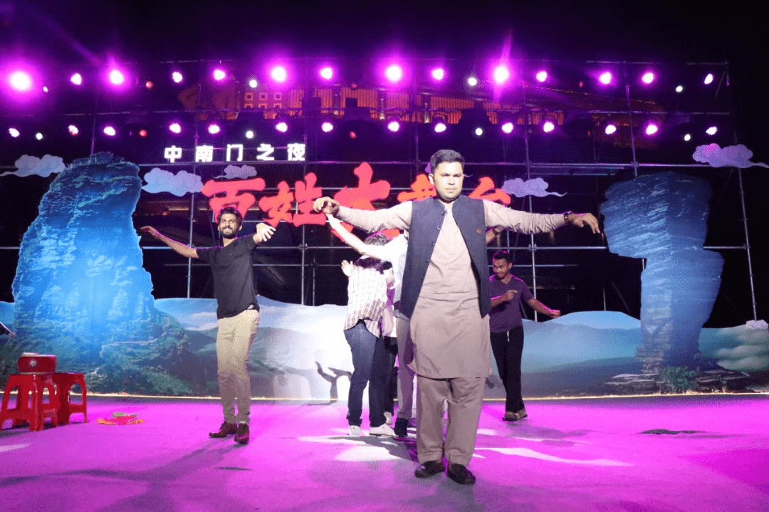 为让国际学生深入了解铜仁本地的特色民俗文化,在中南门百姓大舞台现场,国际学生们和铜仁幼儿师范专科学校、贵州健康职业学院两所高校的学生共同登台百姓大舞台的表演,在舞台上,留学生们带来了印度尼西亚舞蹈《Indonesia wonderland》、朗诵《读中国》、巴基斯坦舞蹈《DIL DIL PAKISTAN, JAN JAN PAKISTAN》等精彩节目,赢得了现场市民们满堂喝彩。