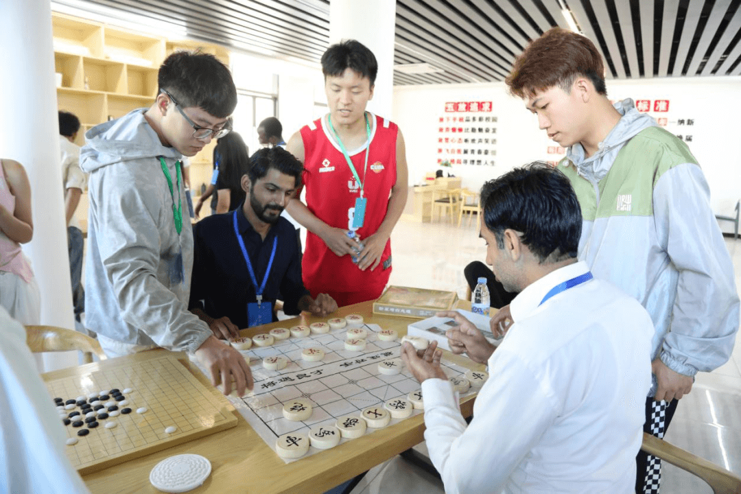 在我院大学生活动中心,国际学生与我院学生开展文化交流,大家一起对书法、围棋、象棋、音乐、舞蹈等开展交流学习,共同体验中华优秀传统文化。围绕“我眼中的贵州”开展面对面座谈,增进了对贵州的认识,增强了情感凝聚。