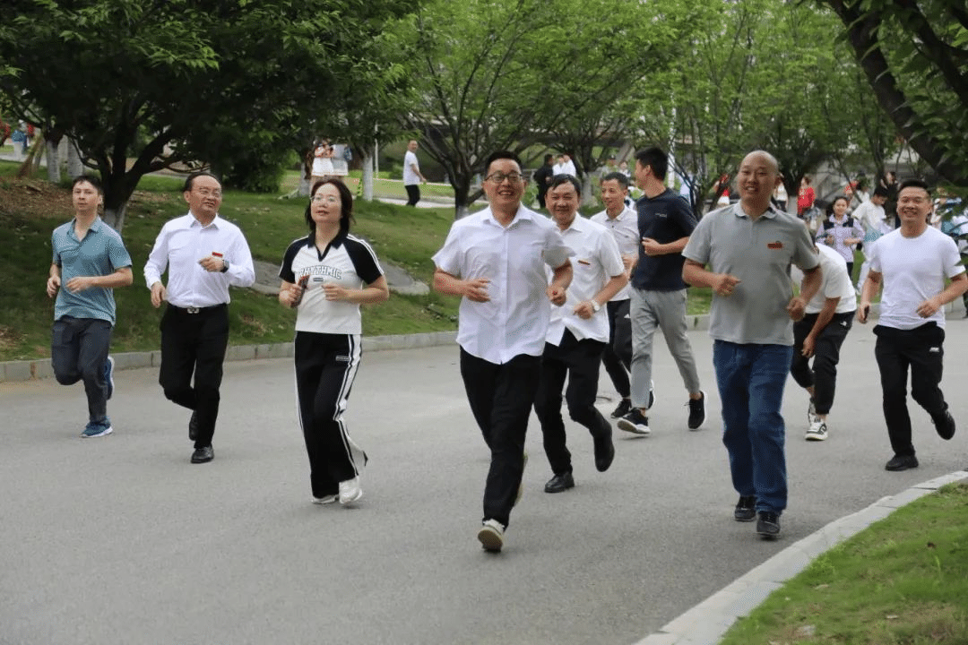 在环校微型马拉松比赛中,学校在家领导班子成员率先参与带头跑,沿着田径场主席台前出发,经过天桥路口、体育馆、大礼堂、樱花林等地,最终回到体育馆内。大家在奔跑中享受运动的乐趣,感受校园的美丽。