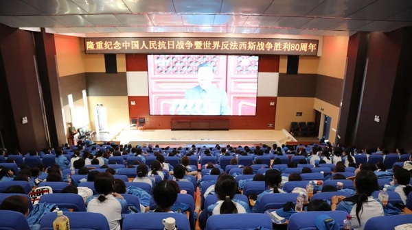 9月3日,校党委领导班子和全体师生在学校行政楼视频会议室、大礼堂、学术报告厅,以及各办公区域、教室,共同收看纪念中国人民抗日战争暨世界反法西斯战争胜利80周年大会现场直播。