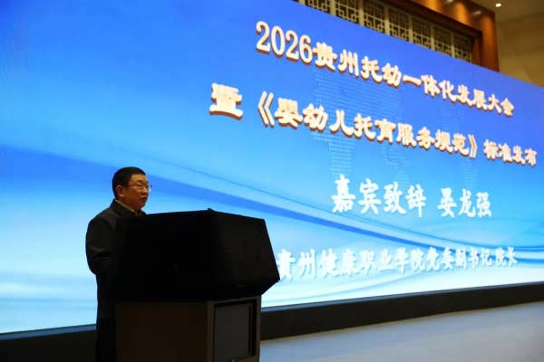 4月1日,2026贵州托幼一体化发展大会暨《婴幼儿托育服务规范》标准发布会在贵阳国际生态会议中心举行。本次大会由贵州省托育服务行业协会牵头主办,全国20余家行业协会、高校及800余名托育领域专家、从业者齐聚现场,共话托幼一体化发展新路径。学院作为核心参编单位受主办方邀请,学院党委副书记、院长晏龙强率队深度参与本次大会各项议程。