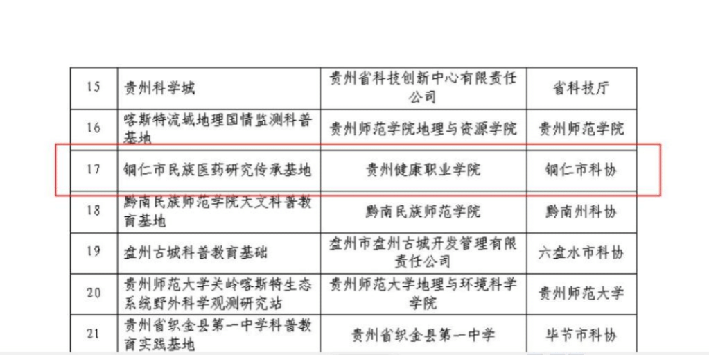 10月27日,贵州省科学技术协会公布2022年-2025年度贵州省科普教育基地拟命名对象,我院民族医药展览馆成功获批,现已进入公示阶段。