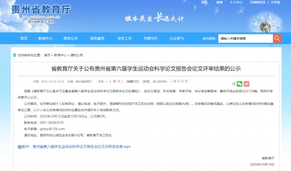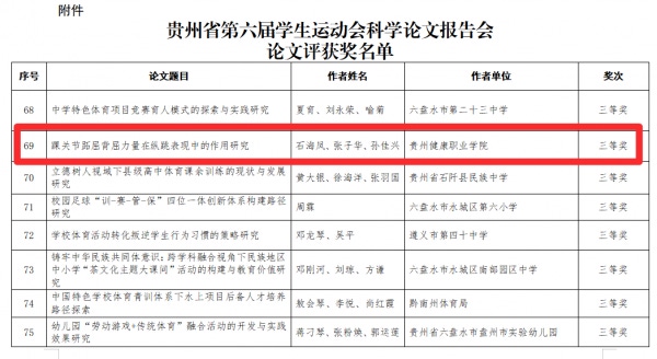 近日,贵州省第六届学生运动会科学论文报告会评选结果公布,我校人文基础部(体育部)教师团队共有3篇论文荣获三等奖。