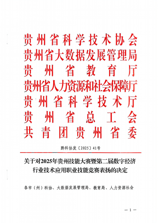 近日,由贵州省科学技术协会、贵州省大数据发展管理局、贵州省教育厅等部门联合举办的2025年贵州技能大赛暨第二届数字经济行业技术应用职业技能竞赛落下帷幕。我校教师宁润青在“计算机程序设计员”赛项荣获一等奖,邵婷老师指导的学生刘锡文在“计算机程序设计员”赛项中获得三等奖,教师王磊荣获“优秀指导教练”称号。