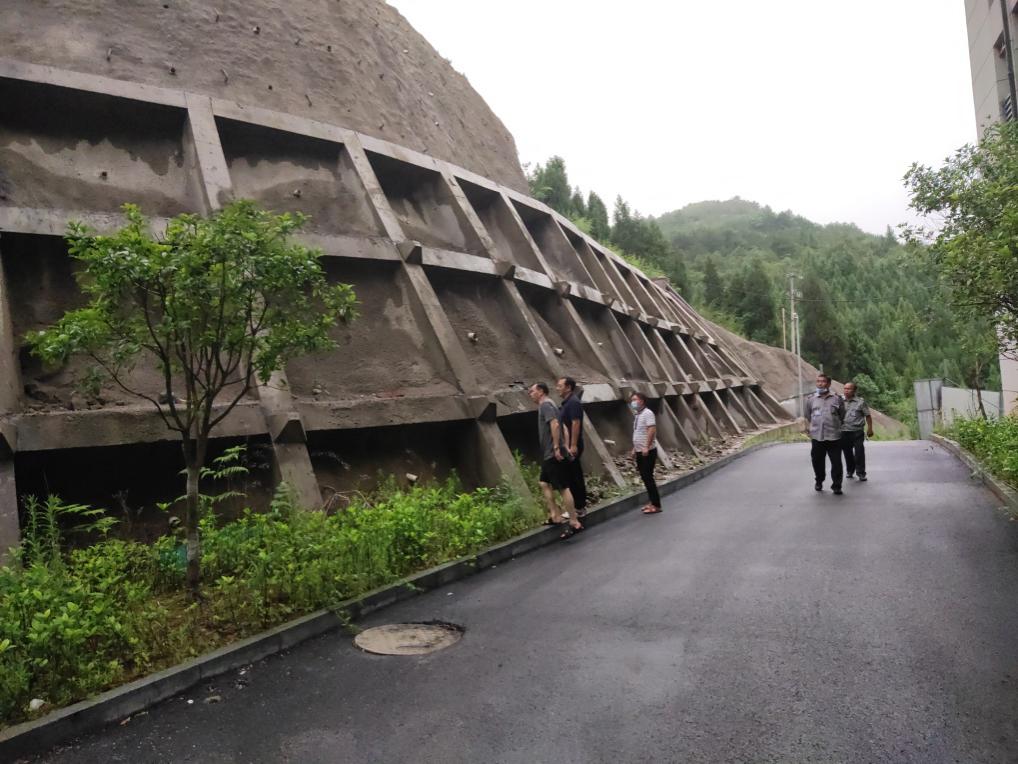图为李黔军副书记实地查看教学区堤坎