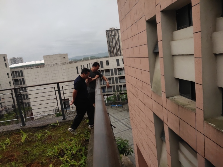 6月22日晚,院党委副书记李黔军深入一线督导校园防汛工作,保卫处处长吴鹏程陪同。