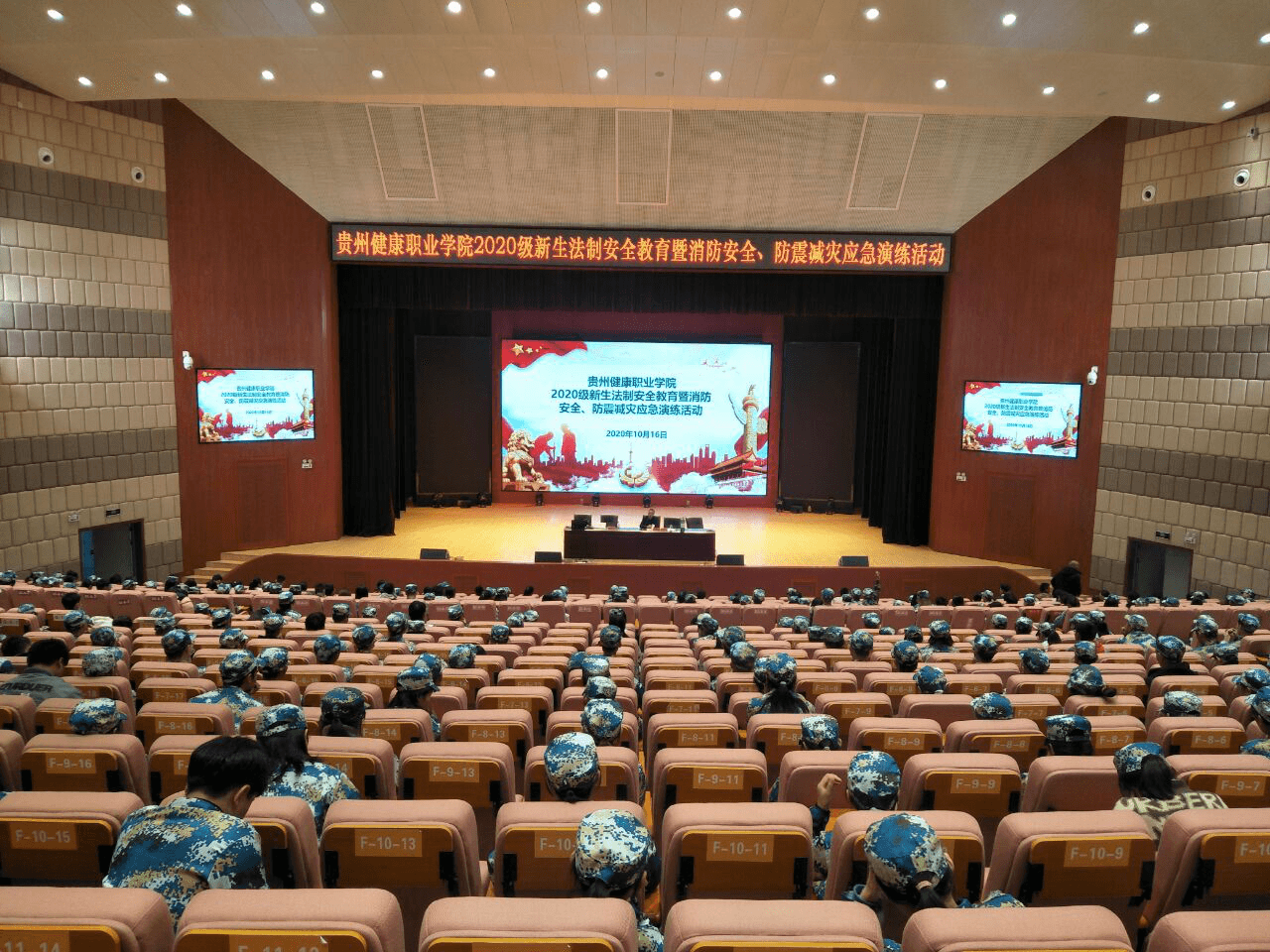 为提高2020级新生安全防范意识、严肃学生学习生活纪律和提高学生应急避险逃生能力,10月16日,我校在大礼堂组织开展贵州健康职业学院开展2020级新生法治、安全教育暨消防、地震避险应急演练活动。2020级全体班干部、全体专(兼)职辅导员、学生处、保卫处和三系学生科相关人员共700余人参加,活动由保卫处处长吴鹏程主持。