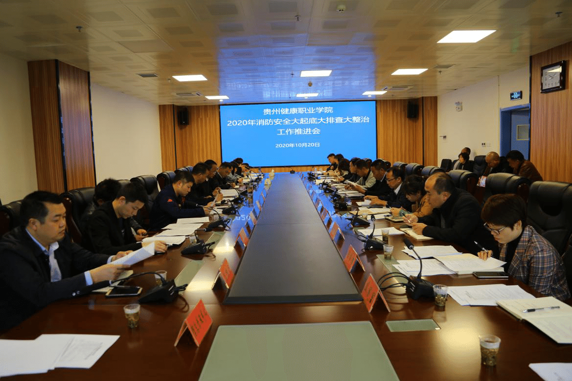 为深入贯彻落省、市及市教育局关于2020年消防安全系列部署精神,根据《贵州健康职业学院党政领导干部安全生产责任制实施办法》要求,2020年10月27日,我院在行政楼二楼二会议室召开2020年消防大起底大排查大整治工作推进会,副院长龙宪碧出席会议并讲话,会议由保卫处处长吴鹏程主持,各部门、各系负责人,物业公司保安队长、宿管队长参加会议。