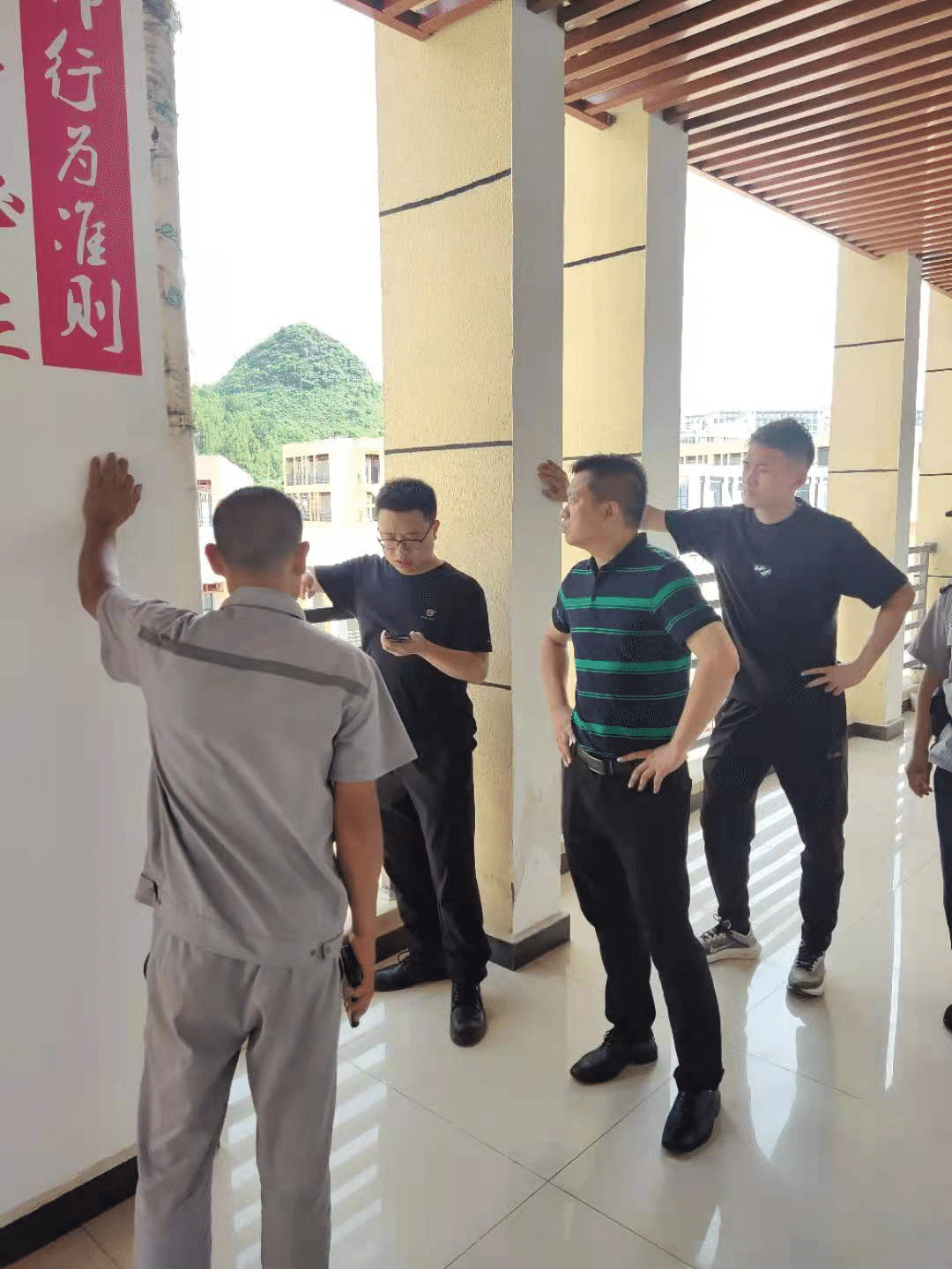 工作员于A区岗亭查看漏水安全隐患