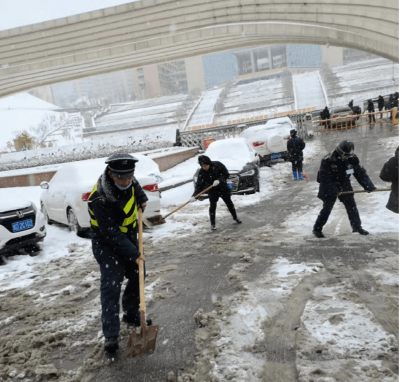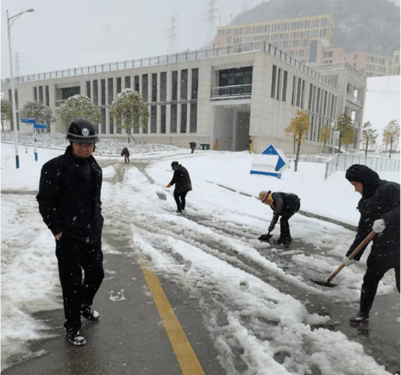 抗击暴雪天气,维护师生安全,保卫校园平安,我们一直在行动。