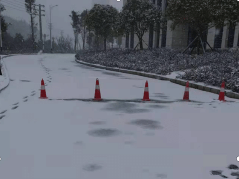 25日夜间,加大校园巡逻频次,每隔半小时对容易结冰重点路段巡逻一次。26日凌晨,路面开始凝冻,保卫处立即启动应急预案,将结冰的廊桥、人行道、车辆通行路段等实施封闭和交通管制。