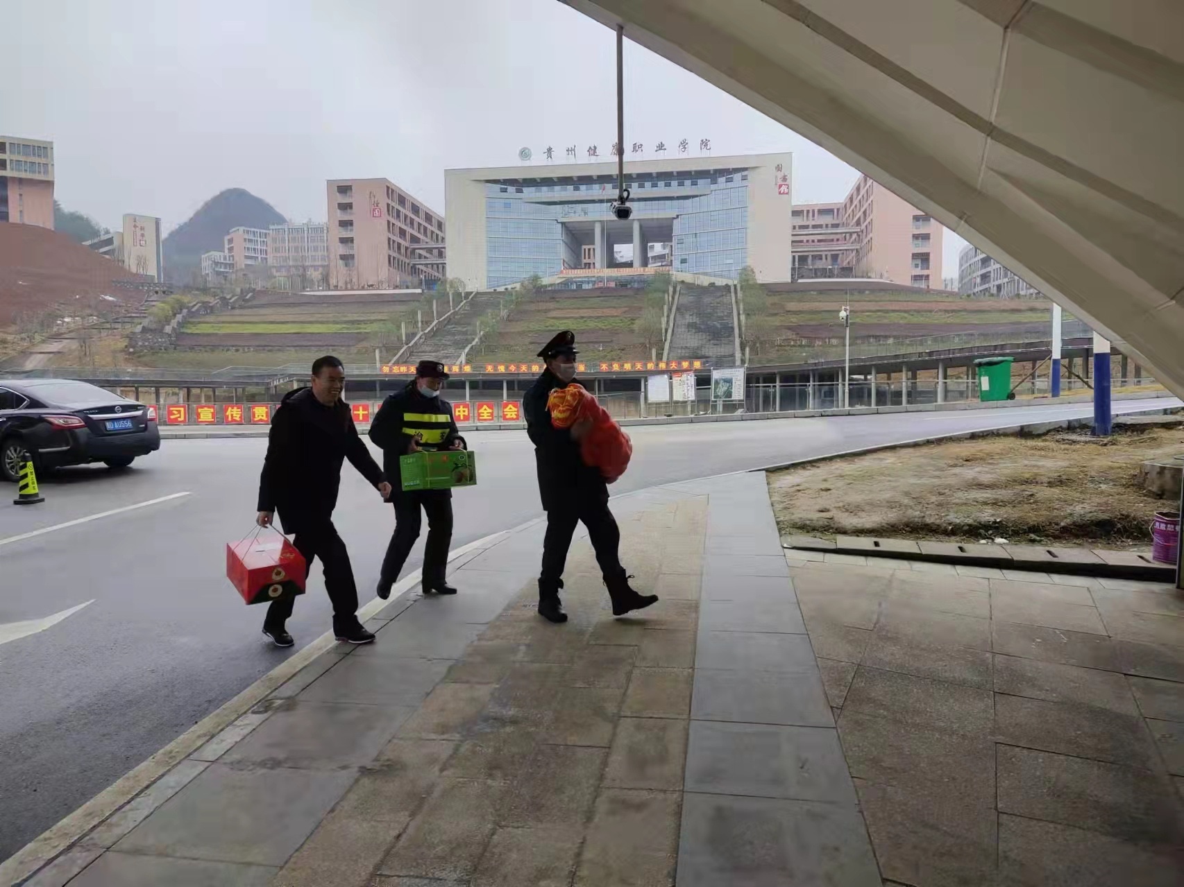 1月31日,保卫处处长吴鹏程对春节期间仍然坚守在岗位一线的贵州兴隆物业公司安保人员开展了慰问活动,亲切慰问了在岗的保安人员,给保安人员送去了温暖,同时吴鹏程处长还向各个安保岗位上的在岗人员发放了慰问品。