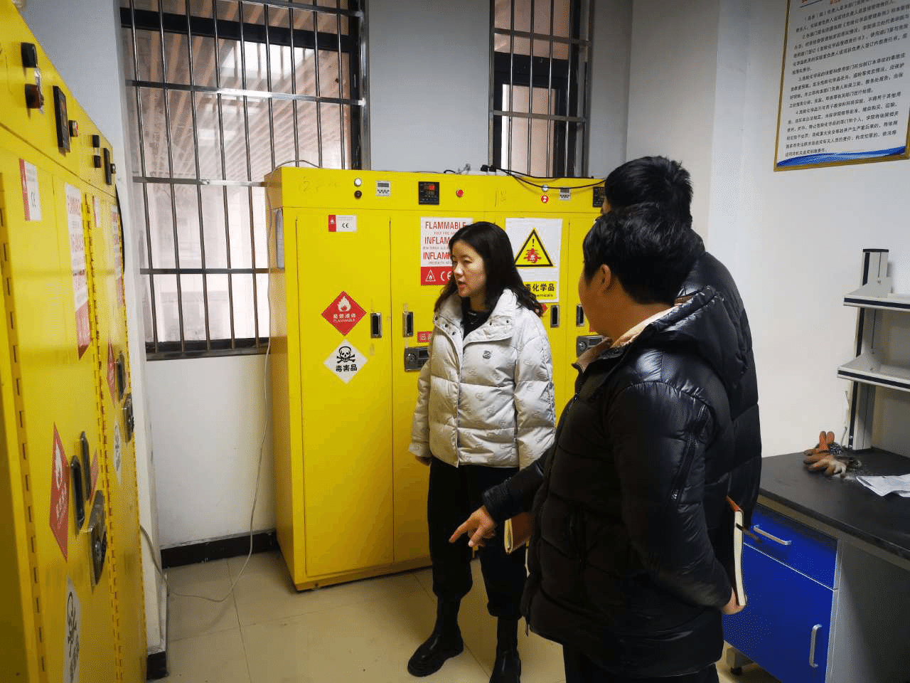 图为工作员查看危化品安全管理情况