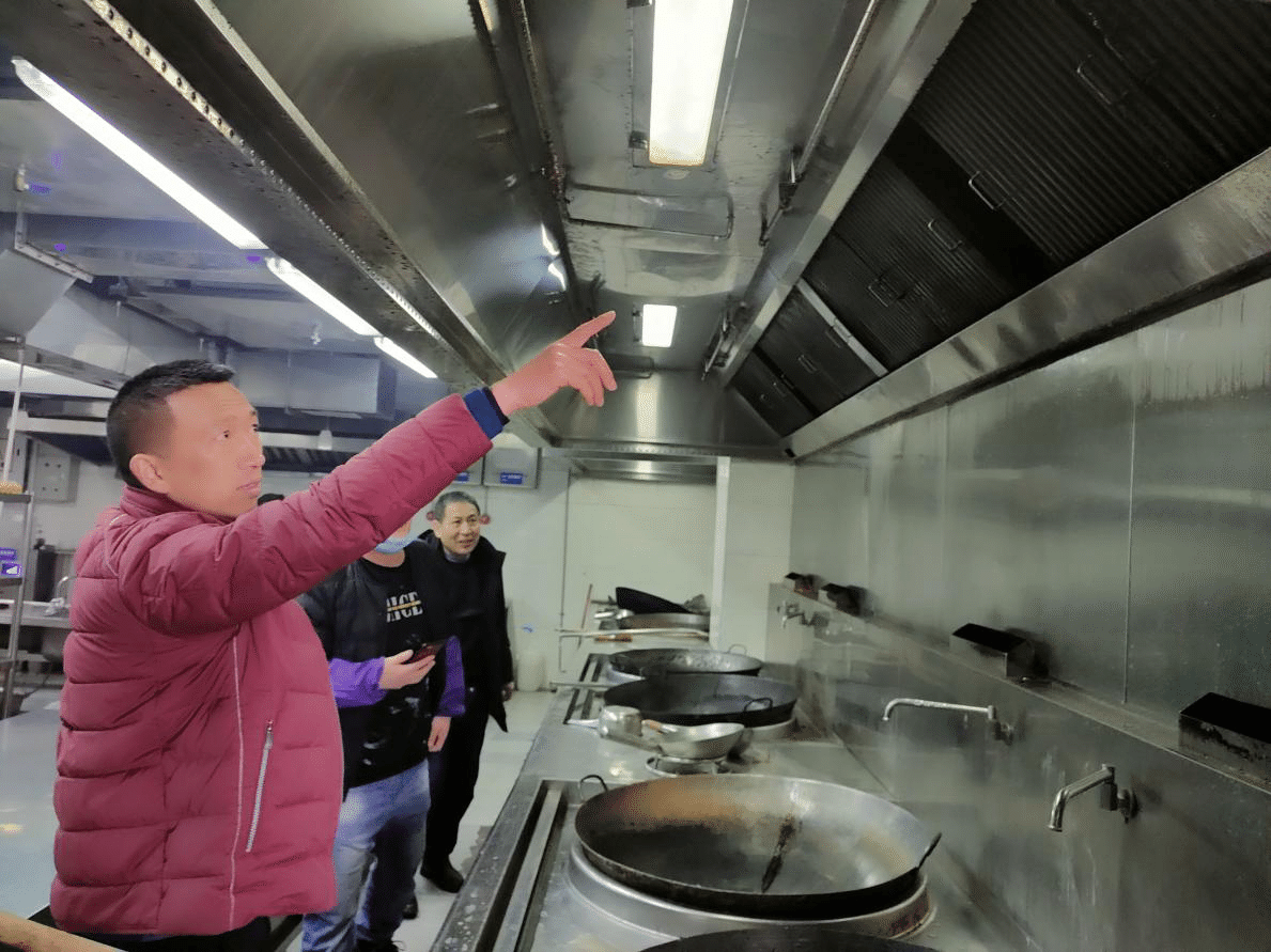 图为工作员于B区食堂查看操作间消防安全