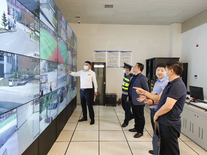 在消防控制室、视频监控指挥中心,他认真点击翻看校园集查询、指挥、调度为一体的视频监控系统和消防自动报警系统,要求坚守好24小时值班制,不定时切换和捕捉视频画面,规范存储保管,构建人防物防技防“三位一体”安全保障体系。
