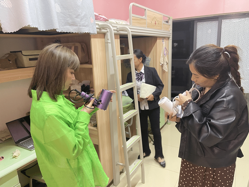 图为工作组成员在学生宿舍开展大功率电器排查