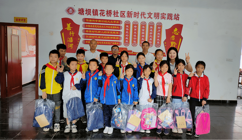 此次帮扶为社区解决了维修路灯、天网系统资金6000元,为安置点留守儿童和贫困学生送去了书包、文具盒、笔记本、彩笔等文具共43套。