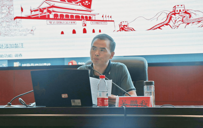 图为保卫处处长吴鹏程在2022年秋季学期辅导员能力培训会上作