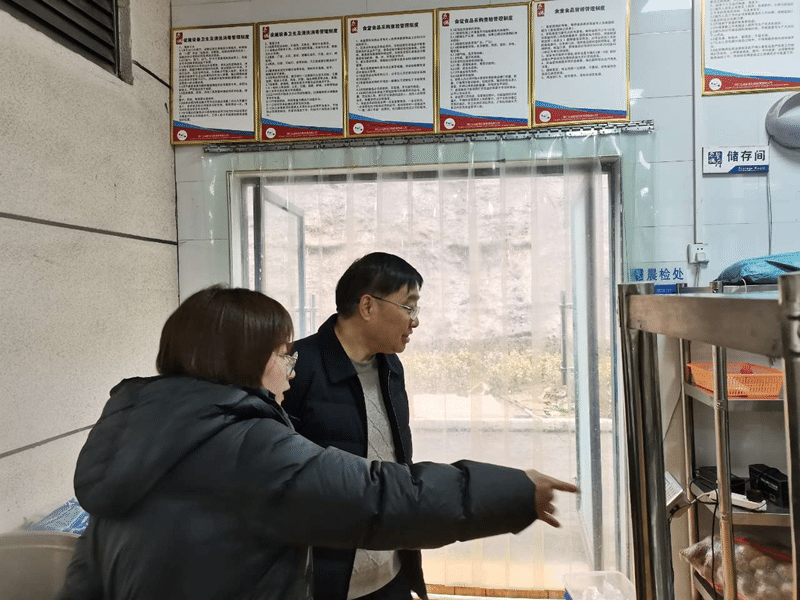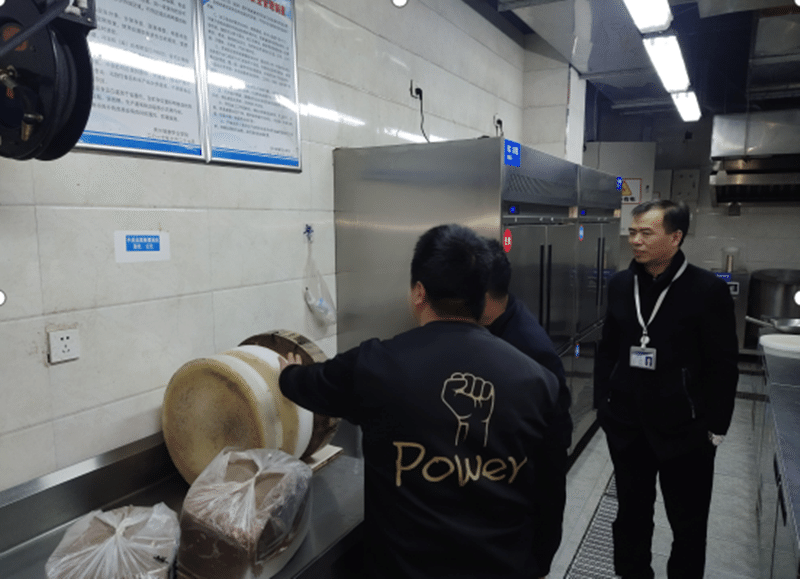 图为学院副院长黄国刚(右一)查看开餐准备情况