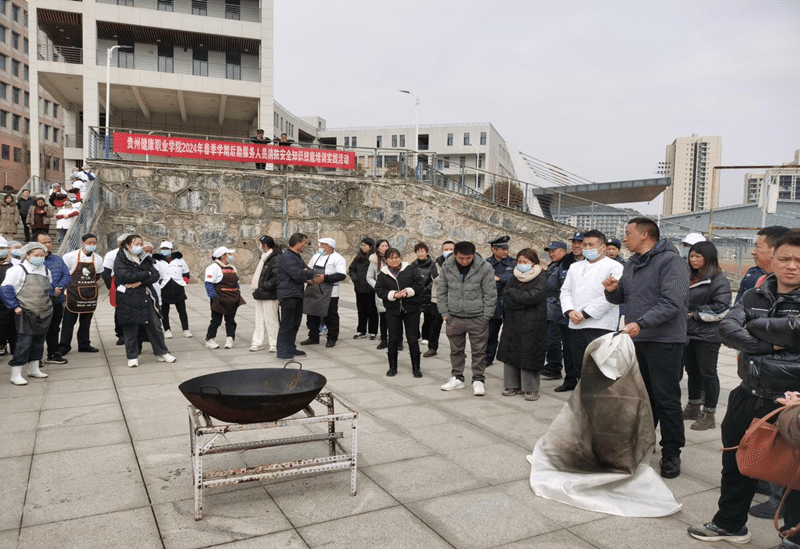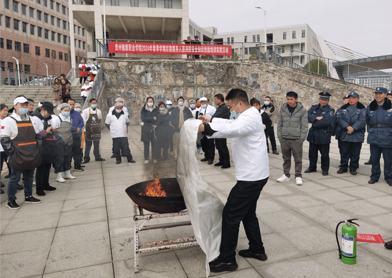 本次培训邀请了碧江区广建路消防救援站站长授课,学院专职消防员、食堂员工、保洁员、宿管员、保安员、工程部人员、超市员工等后勤服务人员参加此次培训。讲座中结合后勤服务人员的特点,从四个方面进行了培训授课,一是要顾全大局,后勤服务工作是学院安全稳定发展的重要环节,要服从和服务于学院工作的开展并对学院负责。二是要服务学生,必须清醒认识到学校工作学生是根本,是服务保障的主要对象,要对学生的人身安全、身体健康负责。三是重点培训消防安全知识:校园火灾的案例分析、宿舍防火安全、食堂火灾隐患及用火、电、气的防火安全、室内消防栓的使用方法。四是扎实开展实操培训:分别从灭火器的正确使用方法和油锅起火的扑灭方法及防范措施进行实战操作。