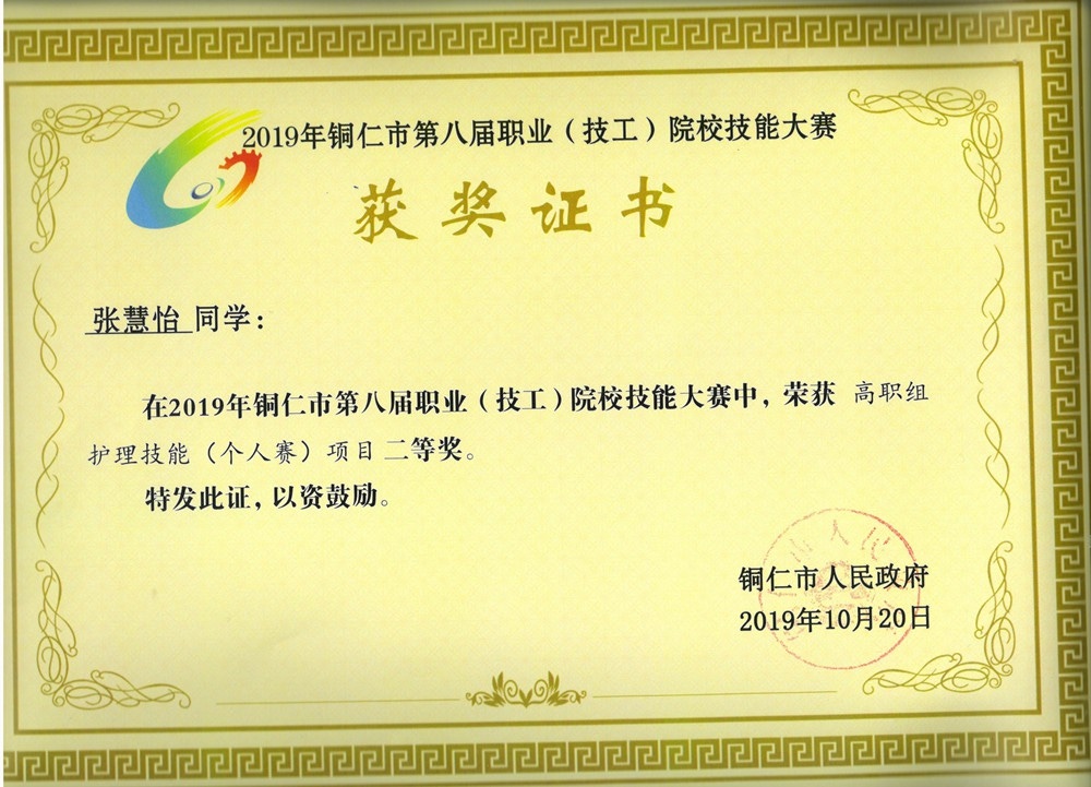 2019年铜仁市第八届职业(技工)院校技能大赛获奖荣誉