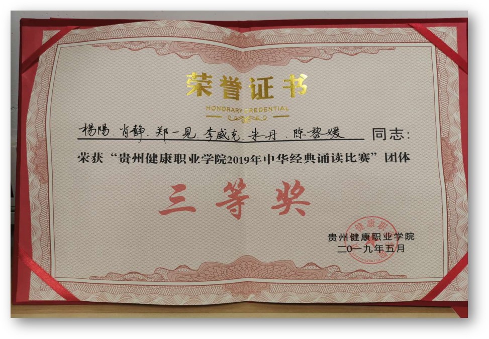 贵州健康职业技术学院2019中华经典诵读比赛荣获团体三等奖