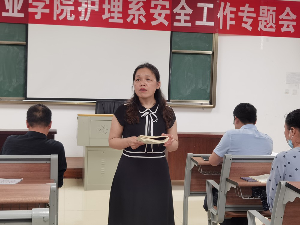 2020年6月7日下午,护理系在学院6-1阶梯教室召开了本学期安全工作专题会议,学院保卫处处长吴鹏程、护理系党总支副书记、主任刘艳、教务科科长陈小红出席,护理系全体教职工及18、19级辅导员参加会议,会议由护理系党总支专职副书记黄文沛主持。