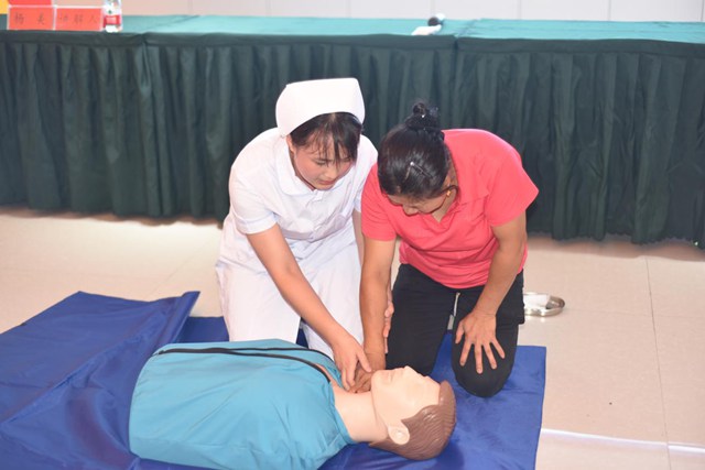 过程中,贵州健康职业学院护理系党员服务队向新居民现场演示讲解了相关急救知识,随后,开展了测血压、测血糖、健康宣教等志愿义诊活动。