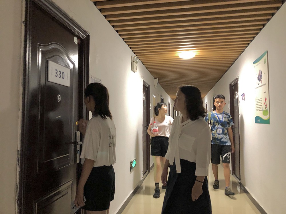 学生宿舍楼内,刘艳与黄文沛了解到同学们入住新寝室存在的问题后,亲自与宿管人员进行了深入探讨,力求从学生的角度出发找到解决问题的有效办法。走进寝室与同学们面对面聊天,就假期生活、见习情况、学习感悟等进行了亲切交谈,从中了解到了同学们对新寝室环境、设施等方面的反馈,并承诺对于目前存在的问题,会认真汇总,寻求解决办法,及时为同学们排忧解难。