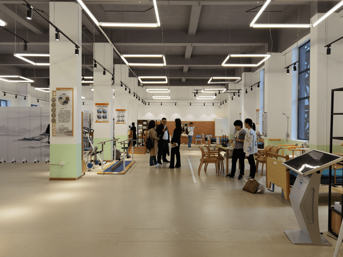 会后,考察团一行在长沙民政职业技术学院护理系丁云、蒋典老师的陪同下,参观了该校智慧养老创研中心、模拟养老院、老年照护示教考评中心、健康养老协同创新研发中心、乐龄活动实训室等地,期间,双方就实训室管理制度建设、文化建设、功能布局等方面进行了深入交流。
