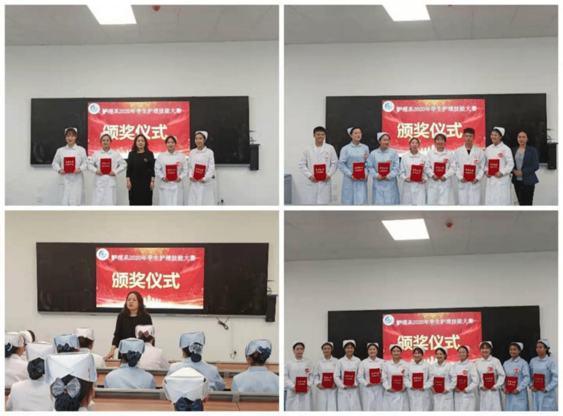 比赛结束,马上举行了颁奖仪式,在主持人宣读名单后,评委老师针对参赛选手的心理素质、时间把控、细节处理及应变能力等表现进行了精彩点评,接着进行颁奖。最后,护理系主任刘艳作重要讲话,她首先感谢老师和同学们的辛勤付出,点赞选手们的精彩表现,并向大家通报了学院短短三年时间取得的可喜成绩和发展愿景,鼓励同学们要勤学苦练,争取“人人展示技能、人人尽能成才”。她强调同学们需做到三点:一是要强化品行修为,做一个品德高尚之人;二是要练就精湛技能,做一个能说会做之人,三是要提升综合素养,做一个知礼仪、有礼貌之人。
