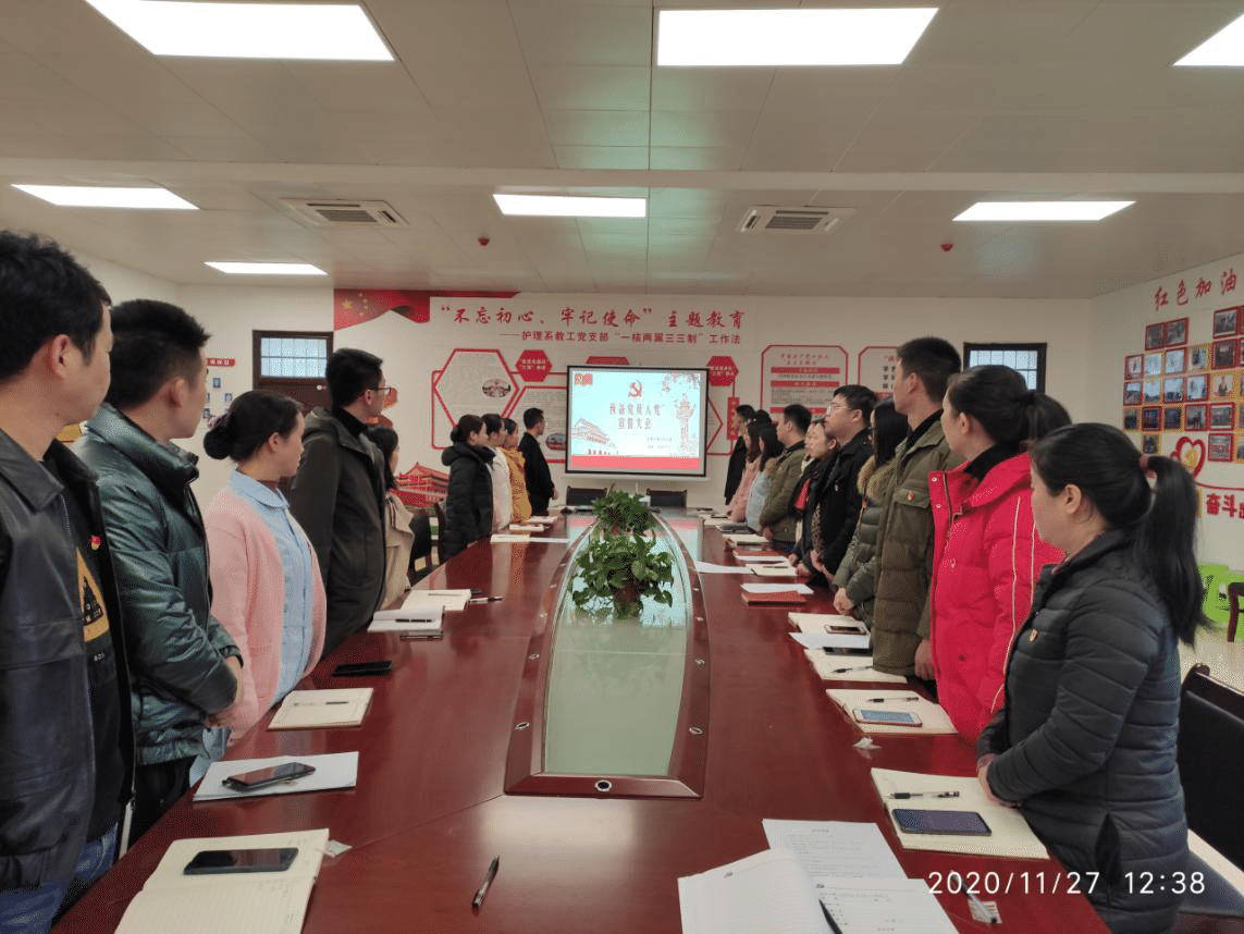 2020年11月27日中午,护理系教工党支部在系党员活动室召开支部预备党员入党宣誓大会,全体党员、入党积极分子参加。