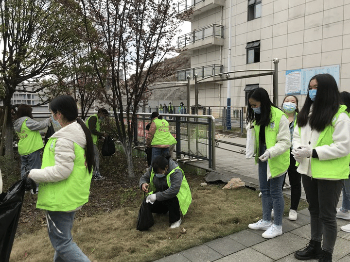 在启动仪式结束后,志愿者们沿着“6-1阶梯教室—途径连廊—春华食堂—A区学生宿舍”的路线为校园环境服务,如收拾白色垃圾、清理路边杂物。在清扫期间,每一位志愿者都秉承着吃苦耐劳的精神及细心负责的态度来完成这项工作。他们不怕脏、不喊累,兢兢业业,互相配合,在来来往往的同学中,身穿绿色志愿服的志愿者们俨然成为了路边一道别样的风景,他们以高度的社会责任感、昂扬的精神面貌展现了良好的形象,为校园环境做出一份贡献。