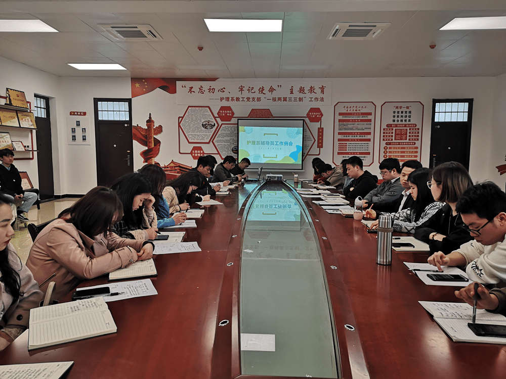 2021年3月28日17:00,护理系在501会议室召开了护理系辅导员工作安排会。护理系副主任黄文沛出席会议,2019级、2020级全体专兼职辅导员参会,会议由学生科负责人张朝勇主持。