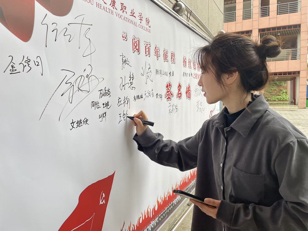 活动现场,同学们参与活动的热情度很高,在“我为学院荐史书”签字推书活动中,大家一度争先恐后,只为在签名栏留下自己的笔迹。在“我来为党送祝福”寄语致党活动中,同学们倾情寄语,纷纷表达了对党和国家的感恩之情。活动中,还有许多同学参加了“党史知识我来答”灯谜竞猜活动,通过趣味答题的形式让同学们进一步了解了党的历史。