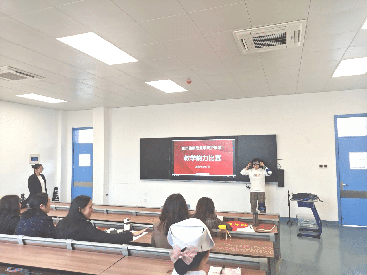 2021年5月7日14:00-19:00,护理系在510一体化教室举行了教师教学能力比赛。本次比赛共有8个参赛队、21名教师参赛。党委委员、护理系主任刘艳莅临赛场指导,学院教务处处长蒋凤仙、护理系教务科科长陈小红、骨干教师李蓉山担任本次比赛评委,护理系全体无课老师到场观摩学习。