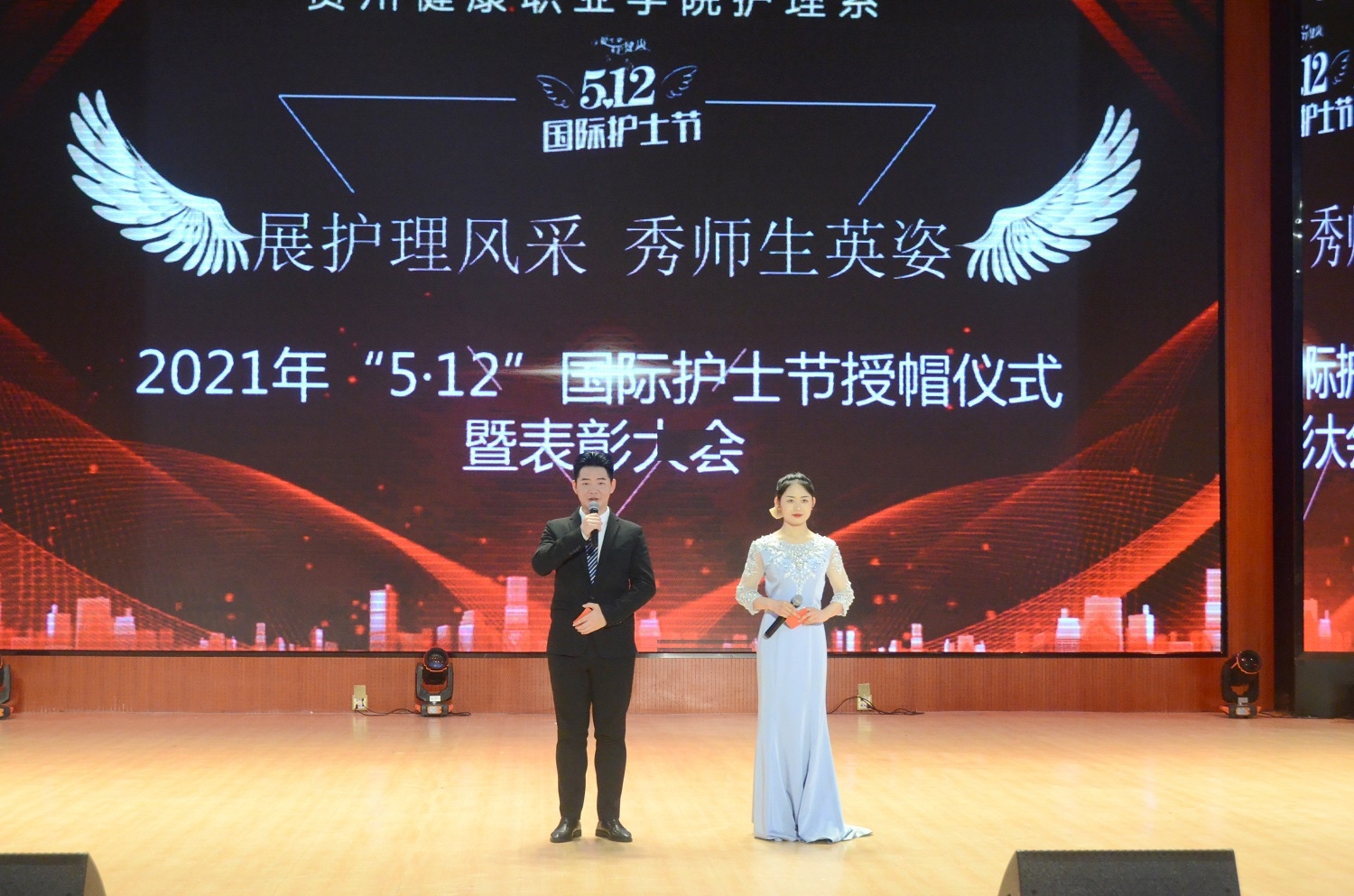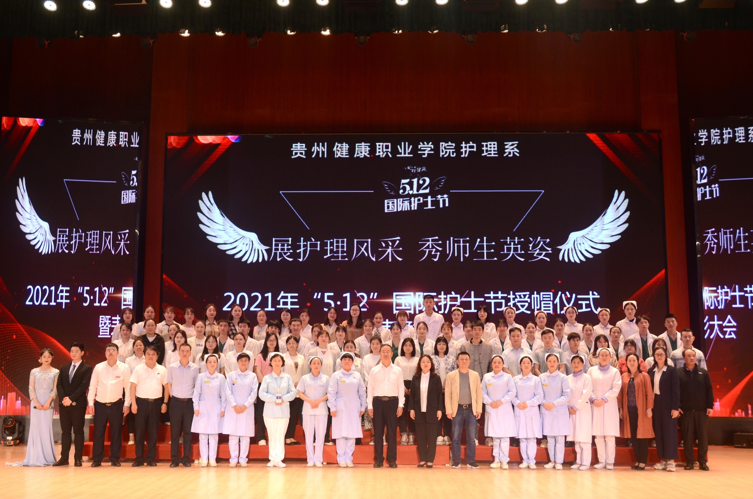 在喜迎建党百年之际,我们迎来了第110个国际护士节,为深入贯彻落实习近平总书记在职业教育大会上重要讲话精神,弘扬南丁格尔为护理事业无私奉献的高尚品质,贵州健康职业学院护理系于2021年5月12日晚7点在学院大礼堂举办了“纪念‘5·12’国际护士节授帽仪式暨表彰大会”。学院党委副书记、院长吴国才,院党委委员、护理系主任刘艳出席,学院职能部门及系部负责人、行业专家,以及护理系全体教职工与1000余名护生代表参会。